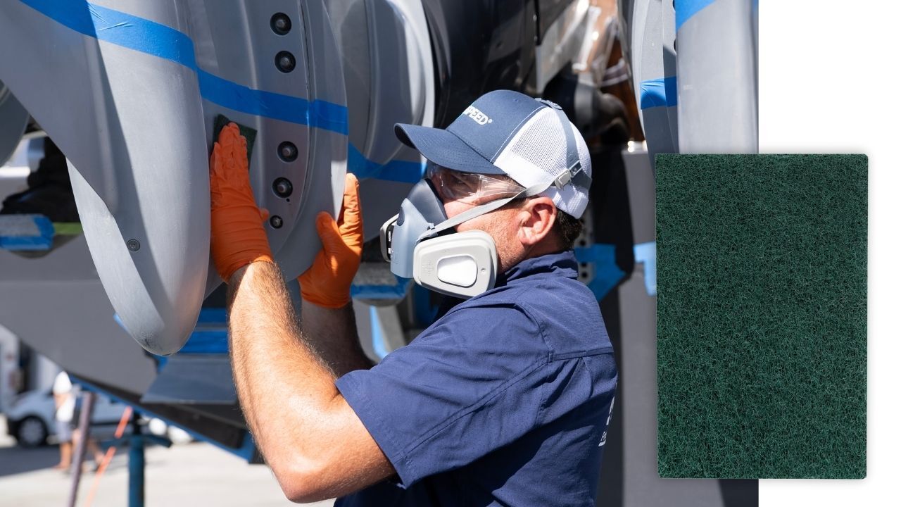 Use a plastic scraper to remove any marine growth if required. If any old coatings are present or stubborn marine growth, use the provided Removal Pad to take them off.